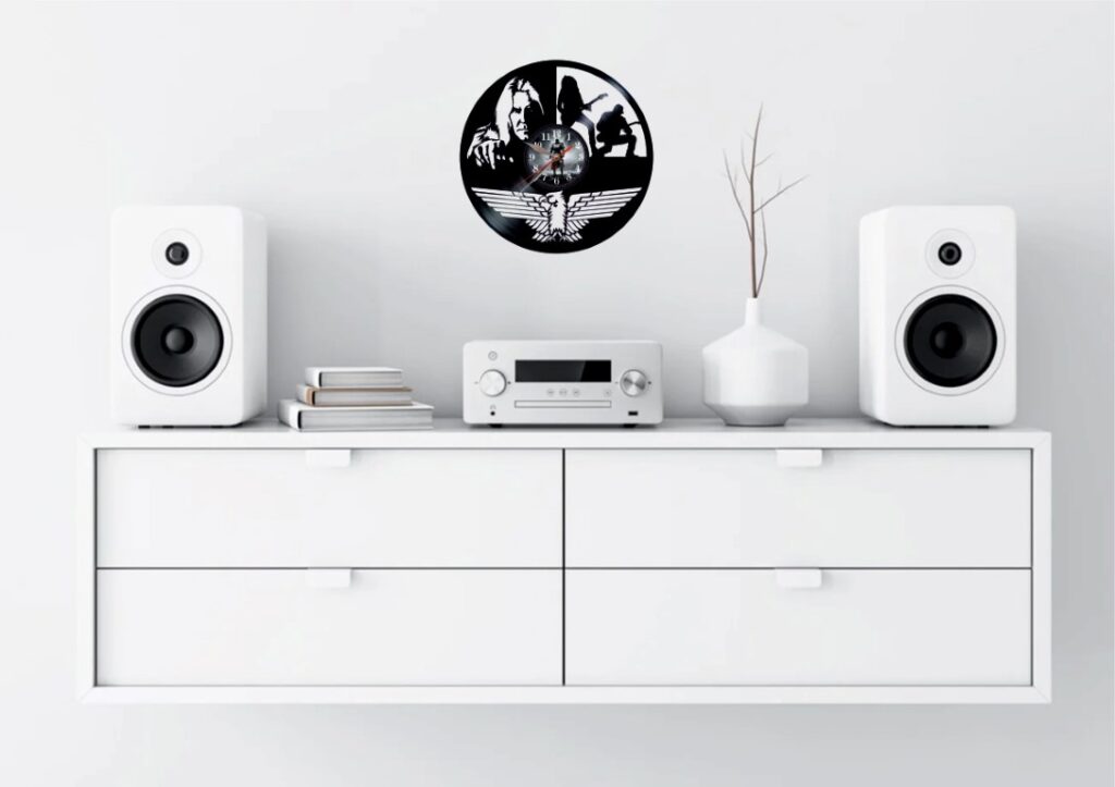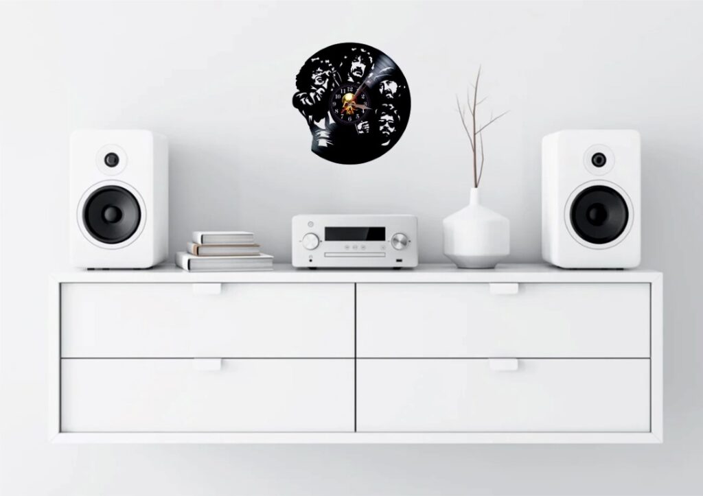 Los mejores bandas del rock internacional devuelven la vida a los discos antiguos convertido en relojes grandes para tu habitacion .Buena eleccion para tiendas de musica o para decorar Pubs,Bares…etc