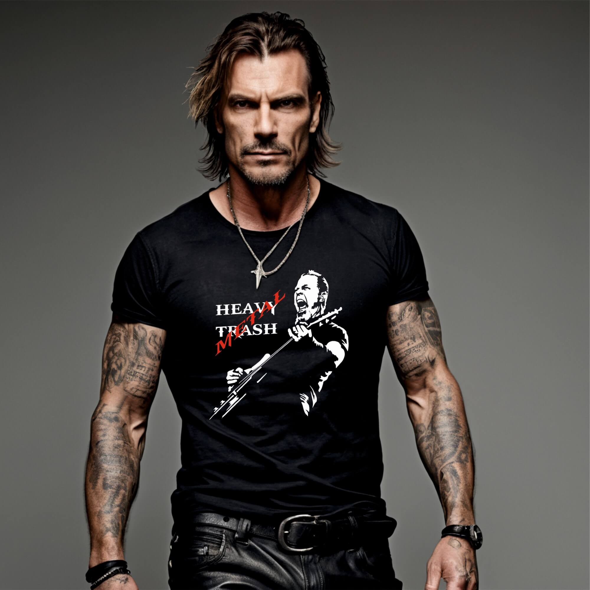- GRÁFICO DISTINTIVO: Impresión de alta calidad con texto ‘HEAVY TRASH’ y una imagen contrastante en blanco sobre fondo negro